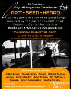 Art Seen Heard Past events See all performances from Art Seen Heard on the Flagstaff Songwriters Circle YouTube page.